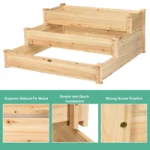 This is our wooden 3 tires elevated vegetable bed. This 4’ x 4’ garden bed is perfect for growing your plants and vegetables. With its step stair design you can place various sized plants inside each level. Each section is approximately 7 inches higher than the next, giving plants ample space between each other to grow efficiently. Solid wood construction make this vegetable can serve you for a long time. Use this bed on your patio, lawn, or garden. If you are plan to plant something, do not miss this planting box.