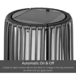 - Solar powered with a charging time of 6 8 hours in direct sunlight, allowing for 8 10 hours of illumination at night with an automatic dusk to dawn sensor
