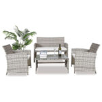 This 4-piece patio furniture set will provide you with an extraordinary comfort experience. The sofa chair has an ergonomic design of wide armrests and curved backrests.
