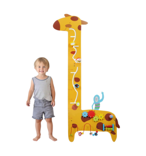 Activity Wall Panels for Toddlers,7 Activities Multifunctional Busy Board Wooden Wall Activity Center,Giraffe Height Ruler – Children’s Early Education Sensory Exercises-Kids Room Decor for Play